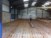 Pumping the floor slab ready to screed next week in Chesterfield at Chesterfield Football Club