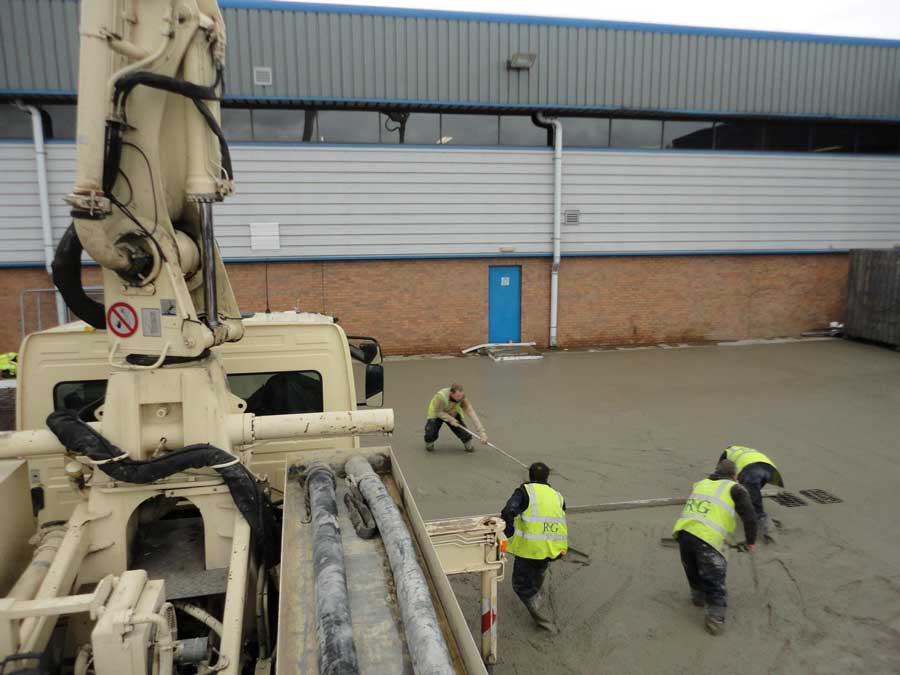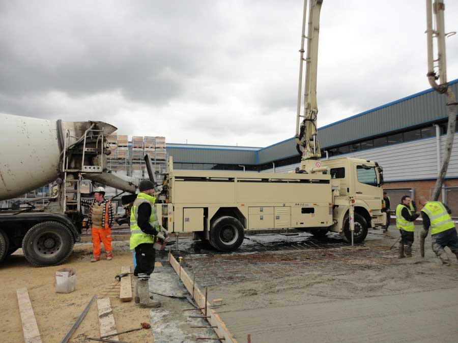 Concrete pumping works in Skipton - 30 cubic metres floor slab pumped and finished off in two and a half hours!